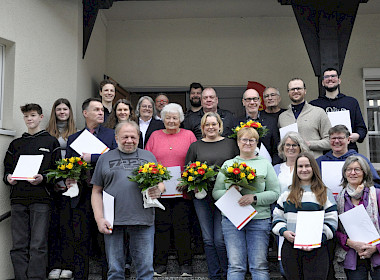 Nachdem noch schnell die Getränke aufgefüllt und eine gemütliche Sitzposition eingenommen wurde, konnte Oliver Kawalla auch schon mit den Ehrungen für langjährige Mitgliedschaften starten. Insgesamt standen für dieses Jahr sage und schreibe 67 Personen auf der Liste der Langjährigen, die mit dem Mitteilungsheft 2024 eingeladen wurden. Neben den 10-jährigen (36x) und 25-jährigen (16x) Ehrungen, sind besonders die Mitgliedschaften für 40 (2x) / 50 (5x) / 60 (2x) / 65 (3x) und sogar 1 x 70 Jahre Mitgliedschaft erwähnenswert.